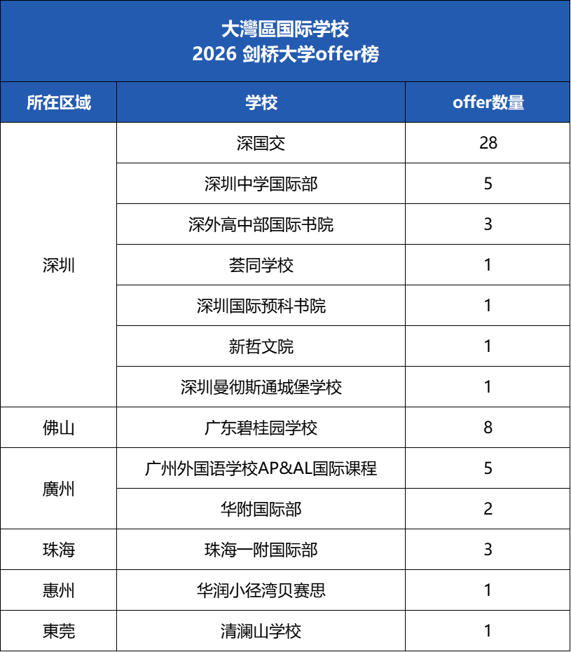 从整个广东省或大湾区来看,60枚剑桥offer,一共来自13所学校