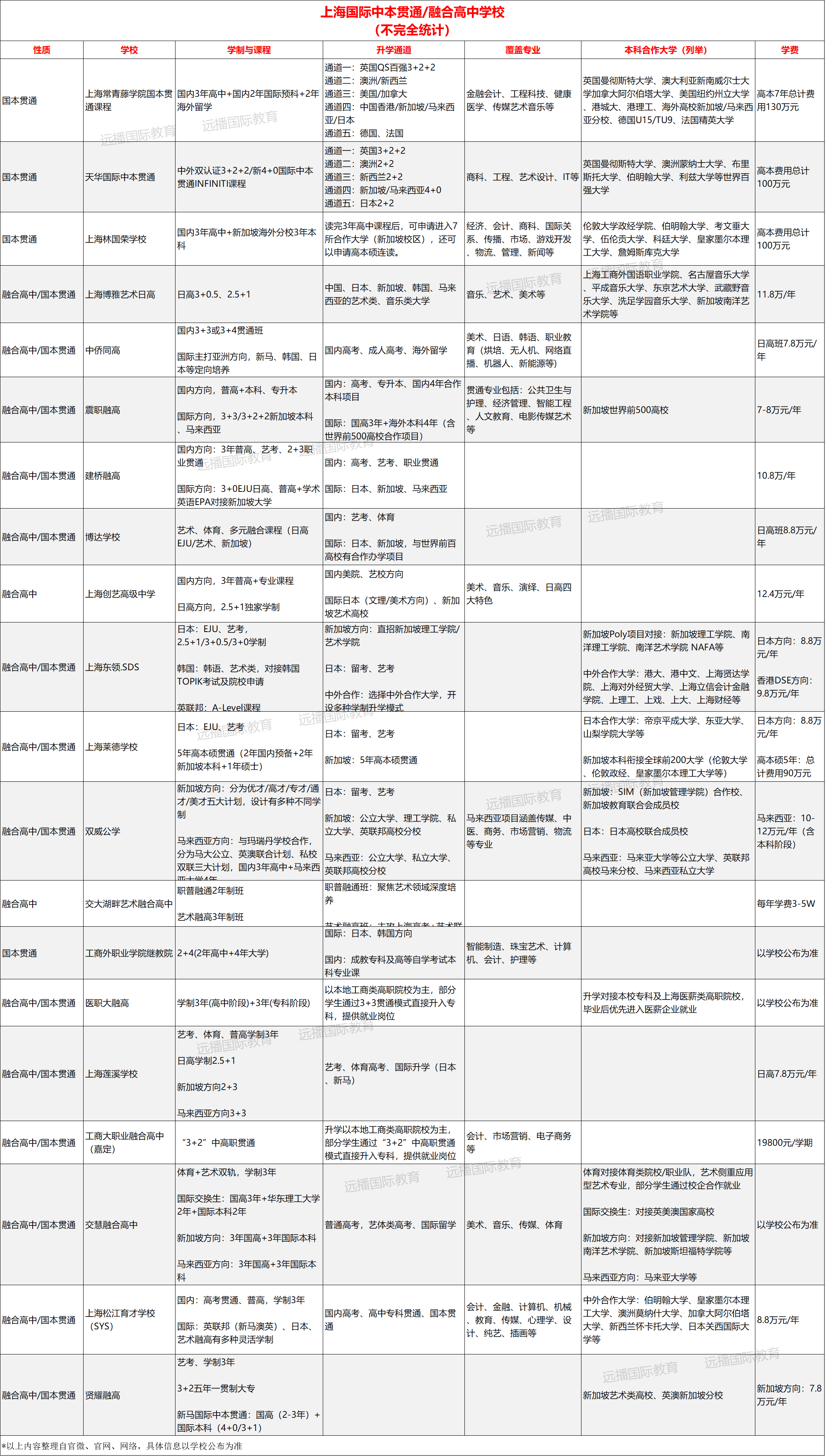 这里也给大家整理了一张上海开设国本贯通、融合高中的学校列表↓