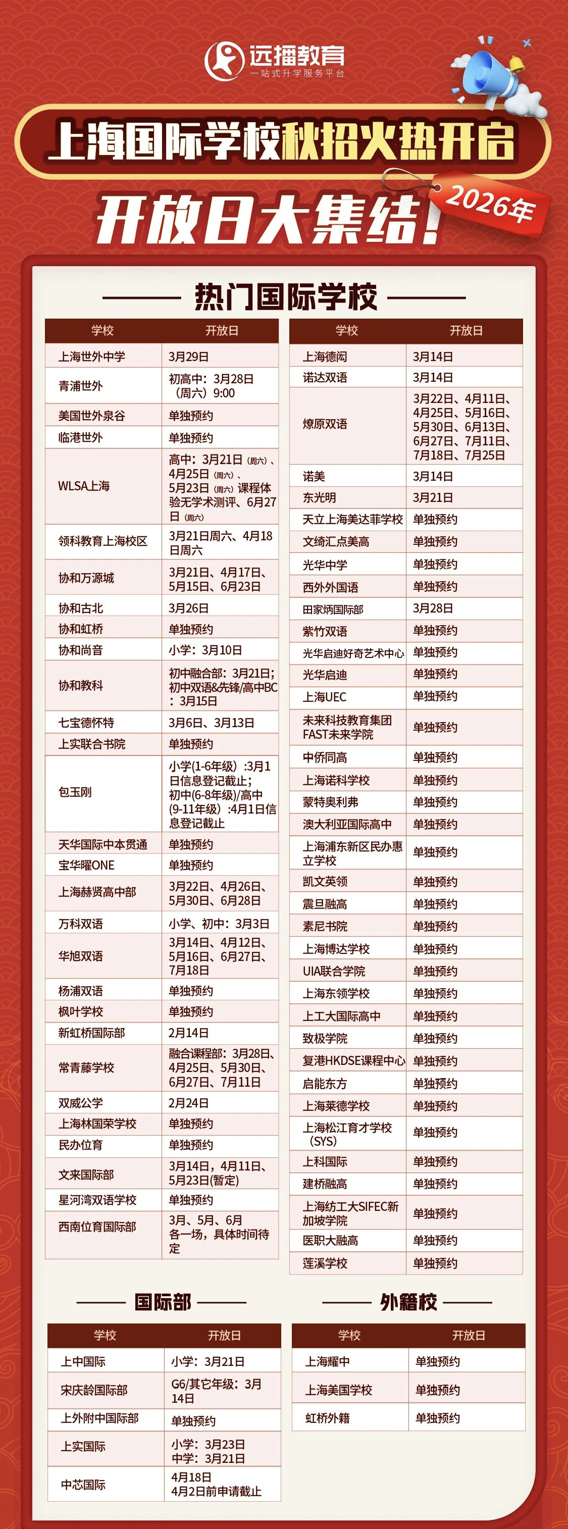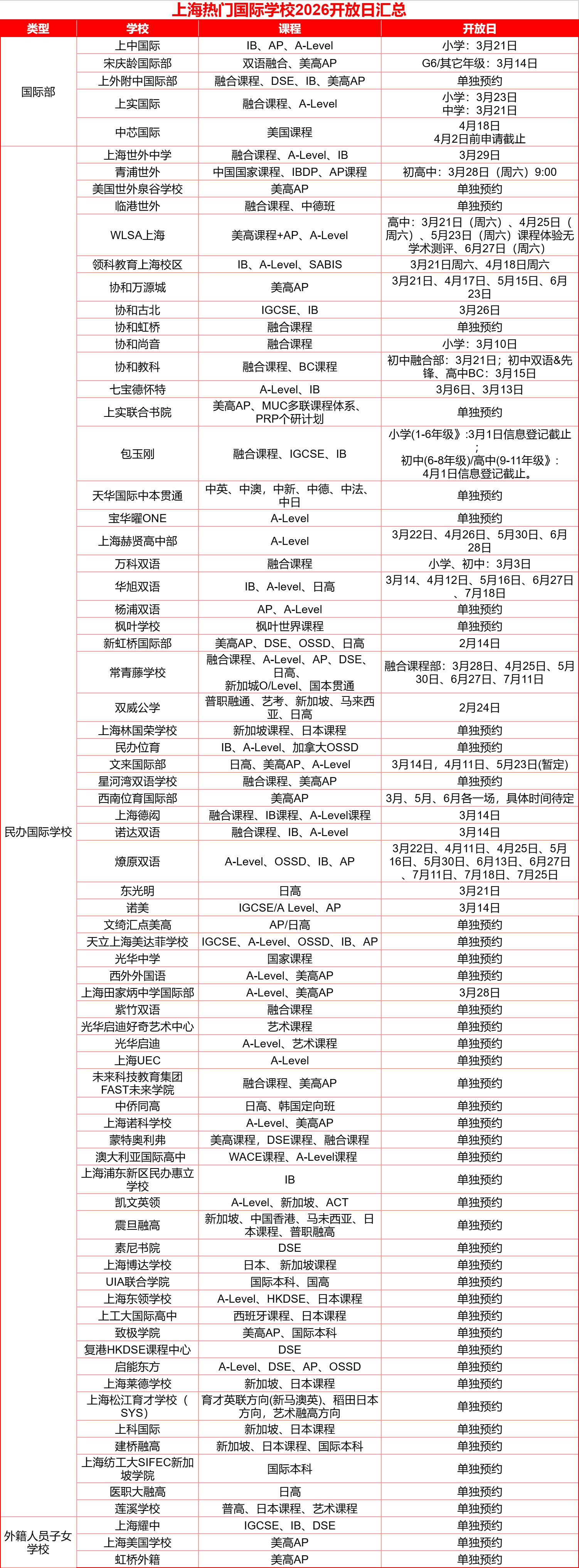 2026上海国际学校最新秋招开放日信息汇总表↓