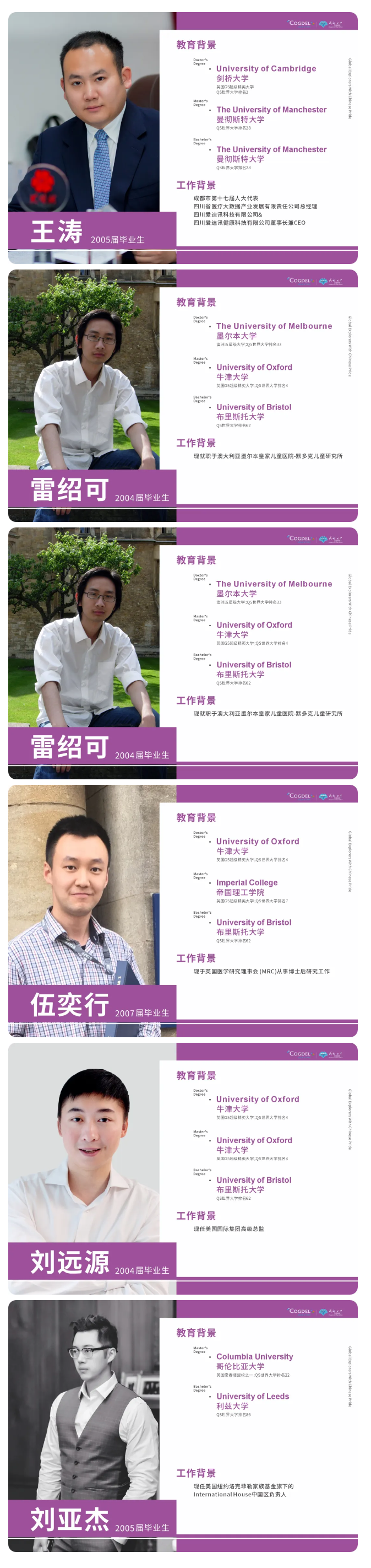办学27年来,上千名IFY学子从成都七中国际部走向世界学府,众多学子本科毕业后有强劲的学术发展潜力,成功升入牛津、剑桥攻读硕士/博士学位;部分学子本科毕业进入世界500强企业、科研院所等。