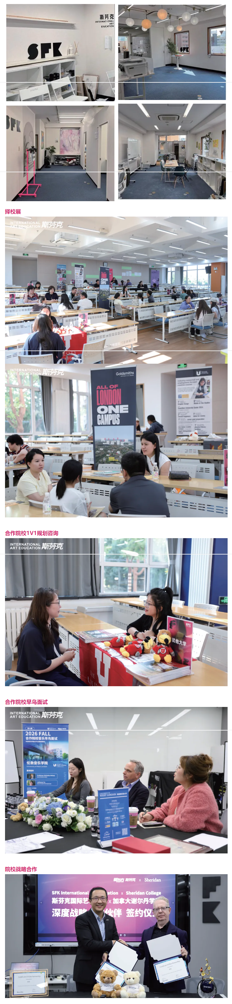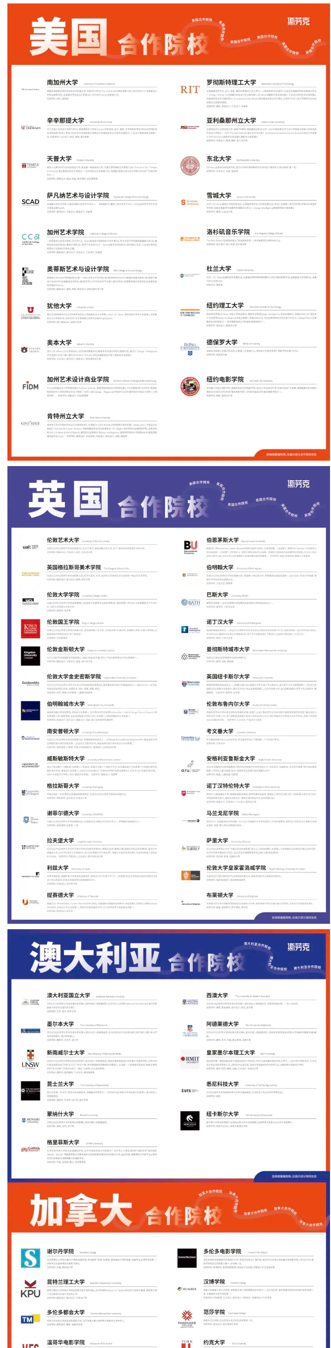 04合作院校:斯芬克国际艺术高中与全球超过70所院校建立合作关系,每年举办超过50场SFK合作院校专场早鸟面试。学校与合作院校保持密切交流,实时更新招生政策及专业信息。
