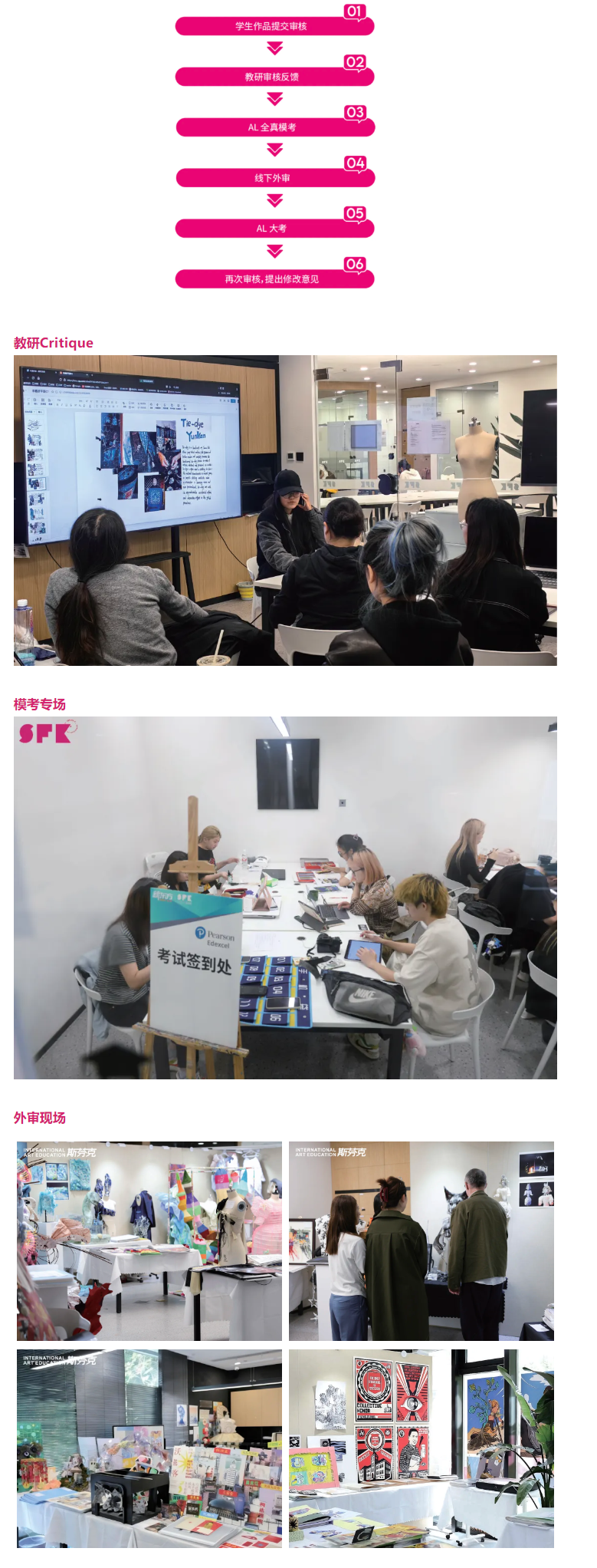 03教研教学:海外教授参与课程产品研发与教学,实时把握院校要求变化,及时对课程进行迭代更新。教学团队拥有多年教学经验,助力学生专业发展;资深教研团队保障作品产出质量。斯芬克国际课程配备专业审核评分团队,分阶段评估课程学习进度。导师与教研老师共同探讨,每一套A - level作品提交6次过程性审核,学生根据教研反馈完善作品。