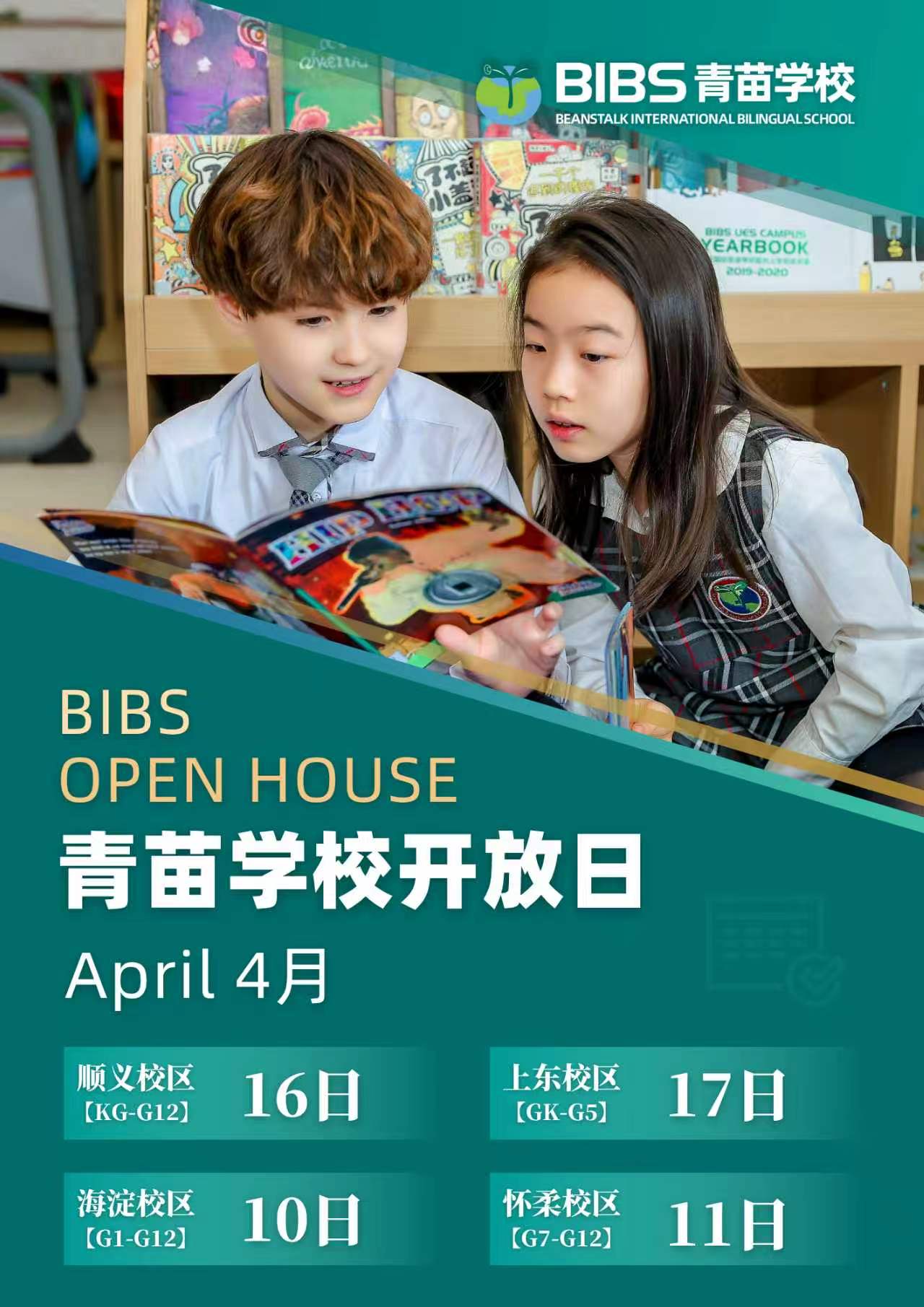 青苗学校(BIBS)将于 2026 年 4 月,在四大校区分别举办校园开放日活动,覆盖不同学段,邀请学生及家长按需选择对应校区与学段场次,实地了解学校办学特色与双语教育体系。