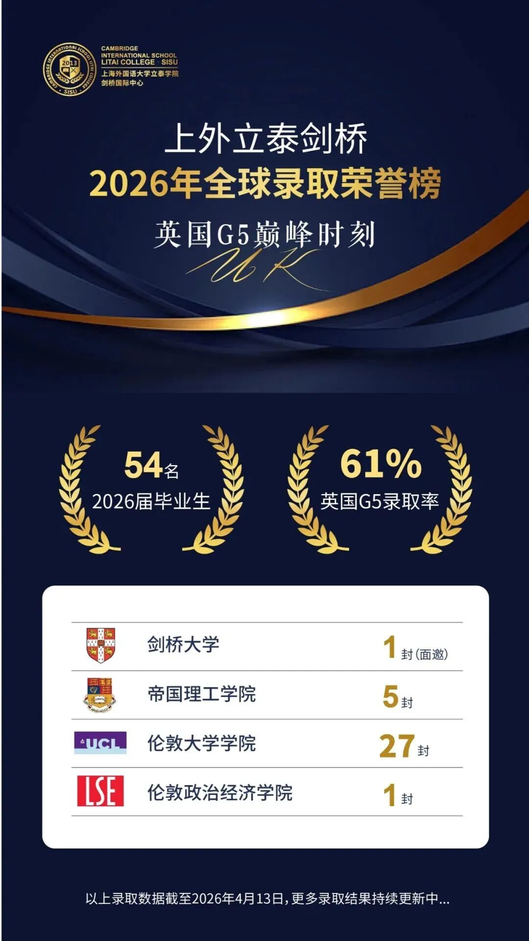 在升学方面上外立泰剑桥提供国内外双通道,“多重保险”规避单一留学方向风险。