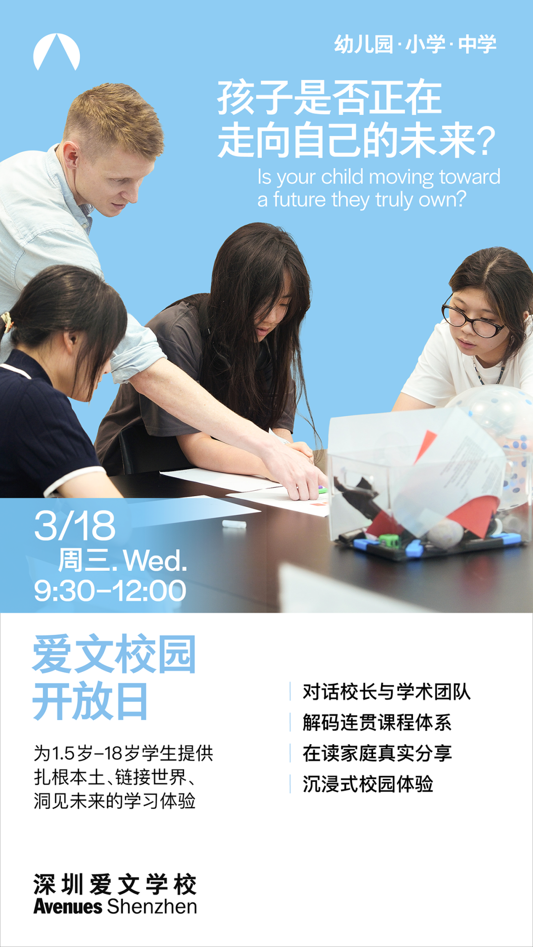 若您正在思索何种教育路径能为孩子带来跨文化学习体验、哪种教学模式可助力孩子解决现实世界问题,以及学校社区文化对学生长期发展有何影响,那么在这个择校黄金时期,诚邀您走进爱文,参加每月一度的校园开放日,全面了解这所国际化学校。