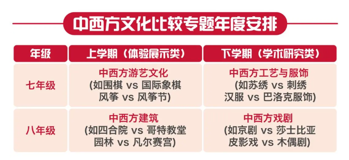 作为课程体系中最具辨识度的创新板块,中西方文化比较专题每年围绕不同主题展开深度探究,分为“体验展示类”与“学术研究类”两个阶段,兼顾感性认知与理性分析。