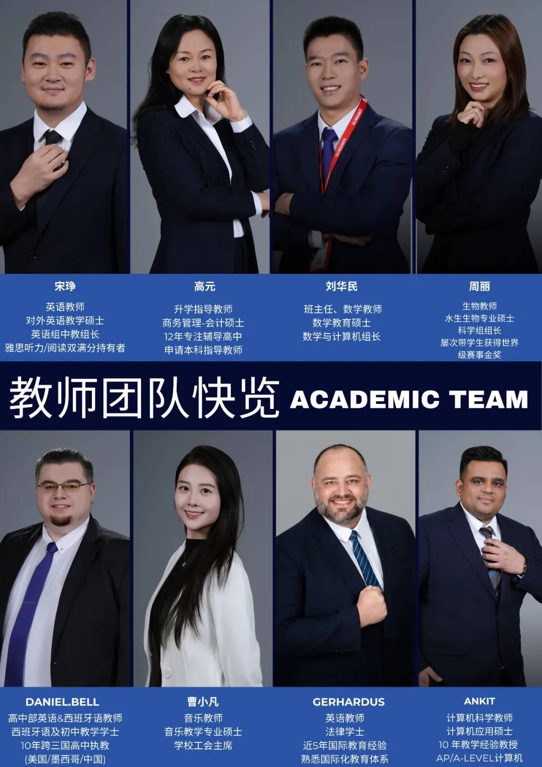 学校拥有国际化师资团队,外教来自美、英、加等教育强国,核心教师均具备海外留学背景与平均10年教学经验。85%教师硕士及以上学历,1:4黄金师生比,保障个性化教学与全方位关怀。