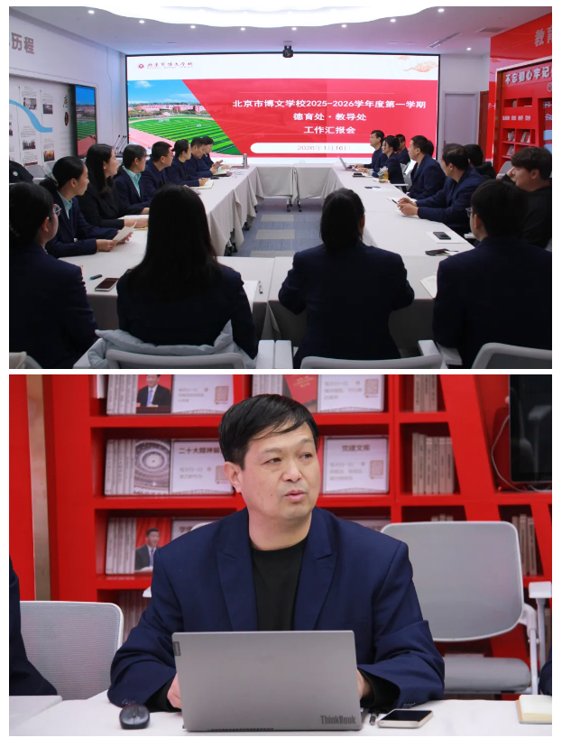 时光镌刻奋斗足迹,实干沉淀教育初心。为全面复盘学期工作成效,凝聚育人合力,明确后续发展方向,北京市博文学校教学德育综合组于1月16日上午在党建室隆重召开2025-2026学年第一学期总结述职会议。教学教务、德育管理人员以复盘促提升,以共识谋发展,为后续教育教学工作筑牢根基。党支部书记冯国红、德育副校长翟宇出席本次会议,教学主任刘小伟主持会议。