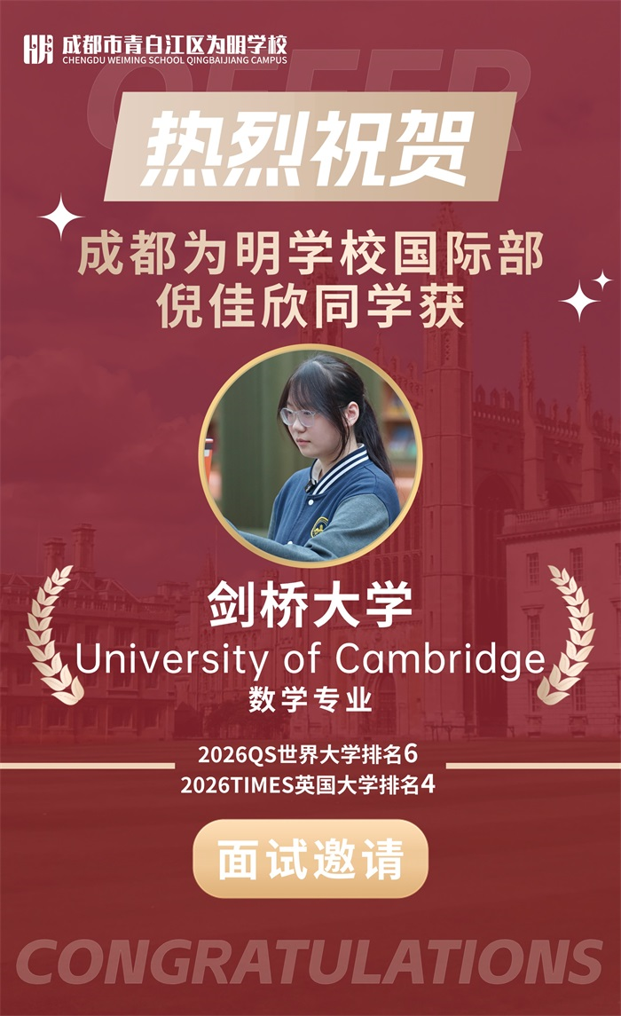 成都为明学校成立于2004年,是一所K12民办寄宿制学校,在校人数4800人,2019年开始开始国际高中课程,是为明教育直属国际部,学校开设英澳国际高中A-Level+课程,由为明教育领航,将澳大利亚南澳高考局SACE 课程与牛津大学AQA国际考试局的 A-Level课程资源进行整合,形成一整套的面向国内初二至高一在读学生招生的国际高中课程。学生毕业后可以获得南澳州SACE高中毕业证书及A-Level课程证书。凭借其证书,学生可以免雅思录取澳洲八大学府,申请英联邦及欧美等国家大学本科。