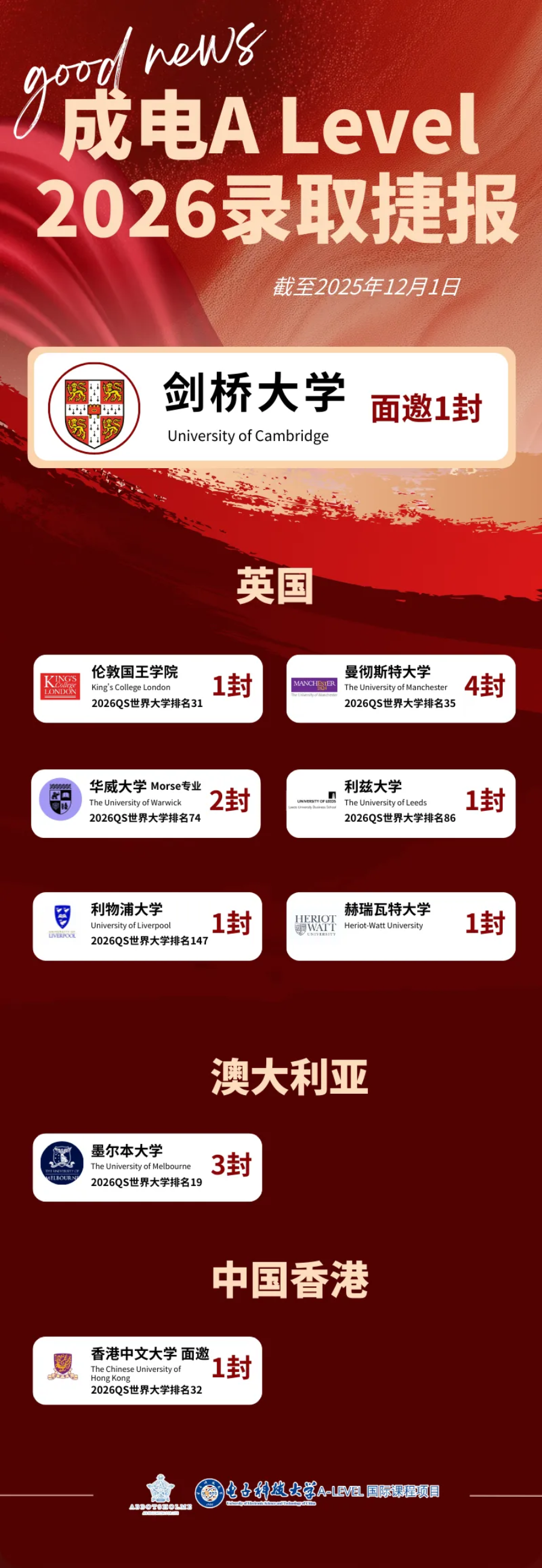 不局限于英国G5.成电A Level构建了“英、美、加、澳、新”全覆盖的升学网络。