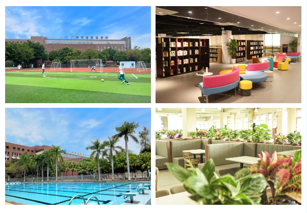 学校环境优越,报告厅、图书馆、田径场、实验室、科技馆等硬件设施更贴近学生需要,可以满足不同层次学生的走班教学,和各种不同特长的学生的场景课室需求。“教育社区”和无边际学习场所,让每一个空间都默默传递育人声音。