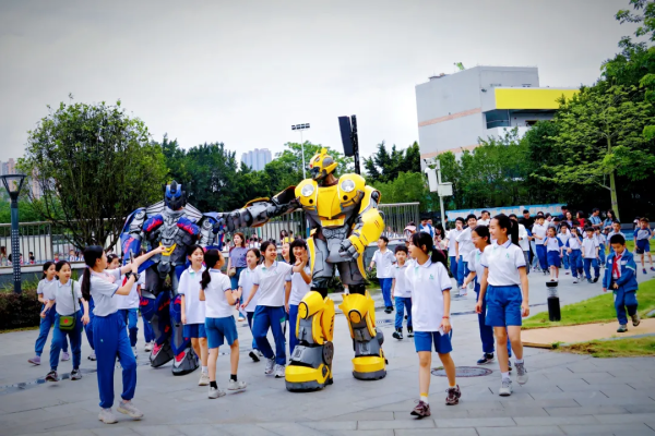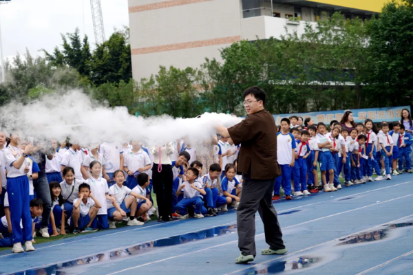 开幕式上,水火箭一飞冲天,无人机飞过撒下漫天花瓣与糖果,干冰实验带来奇幻景象,还有汽车人登场,瞬间点燃了现场的热情。华海双语学校传承华附优秀基因,铸就国际化教育品牌,此次科技探索节正是其在科技教育领域的一次重要实践。