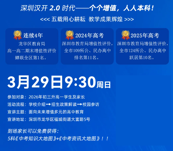 择校对于家长而言至关重要,选择一所高中,实则是选择一种未来。面对民办高中的选择,若您还在反复比对、犹豫不决,与其线上浏览,不如亲自前往校园一探究竟。在充满希望的春天,深圳市汉开数理高中诚挚地向您发出邀约——3月29日新高一开放日,邀您亲身感受这所学校的‘温度’与‘高度’。