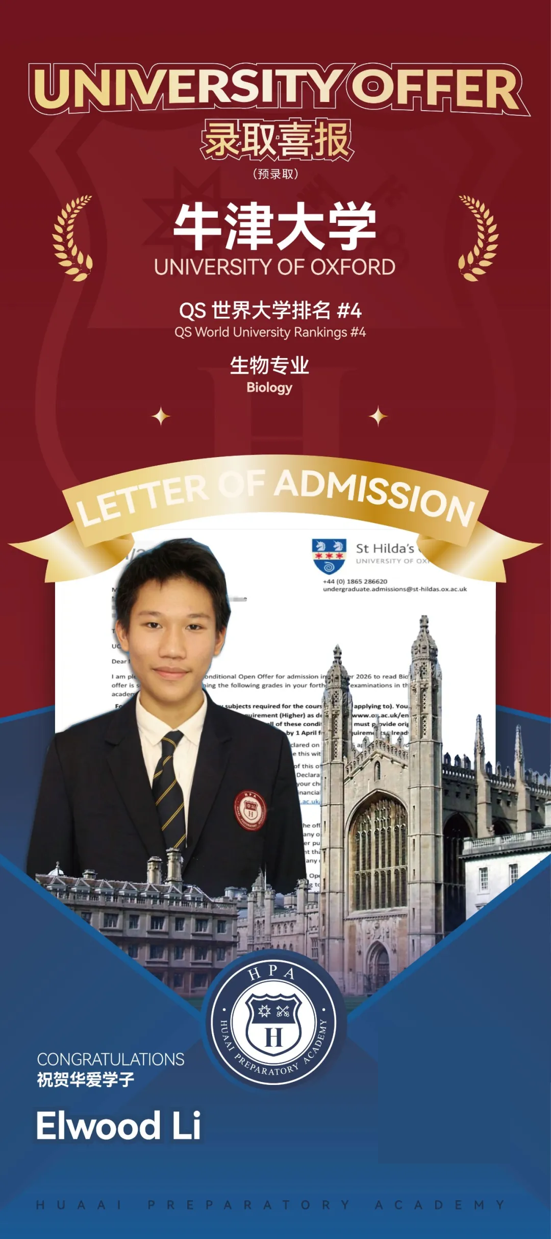 在此,我们谨向Elwood同学及其家人致以最热烈的祝贺!同时,衷心感谢所有任课教师、升学指导团队及支持其成长的师长同仁,你们的辛勤耕耘与专业指导,是学子圆梦世界学府的重要支撑。