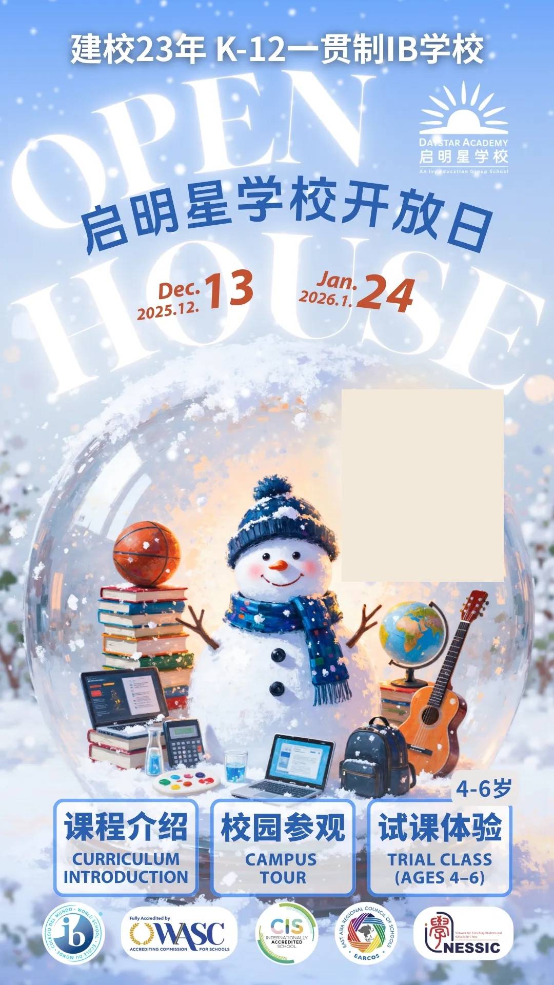 启明星双语学校2023-24学年招生启动:预约参观和开放日请看过来!