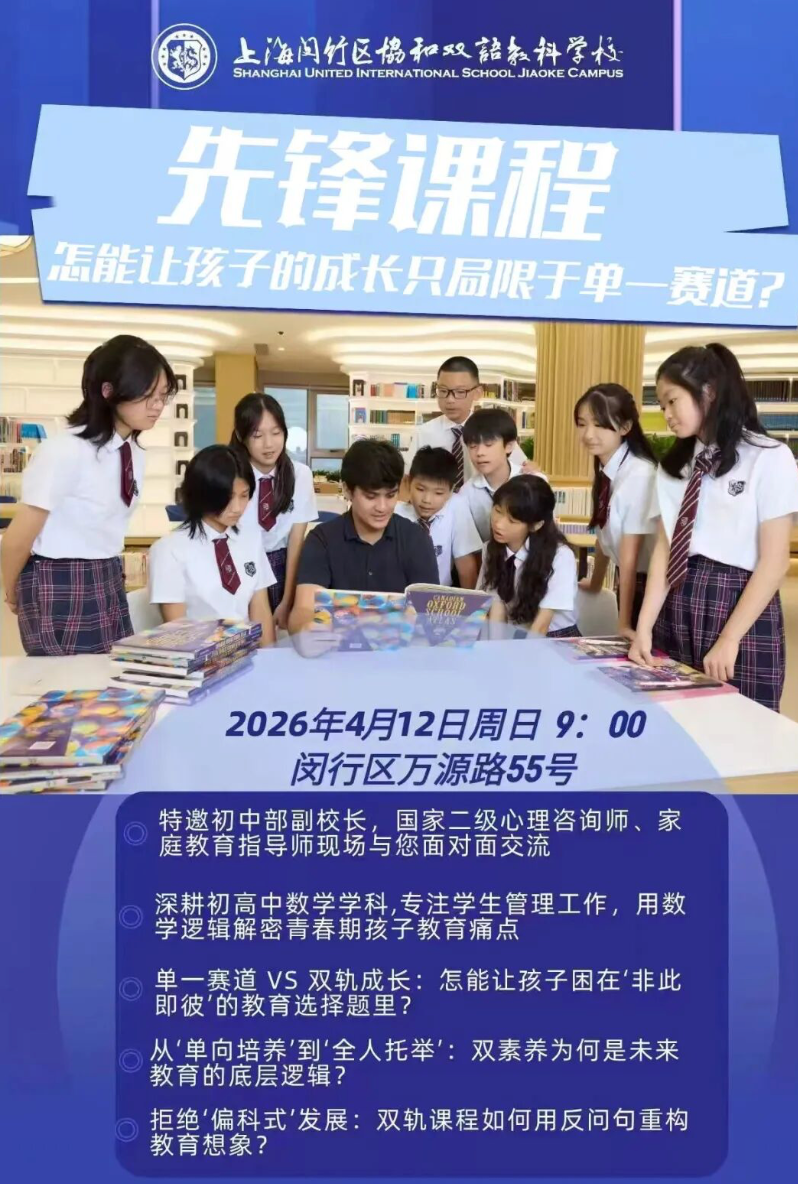4月12日上海闵行区协和双语教科学校初中先锋课程开放日,邀您深入了解优质教育!