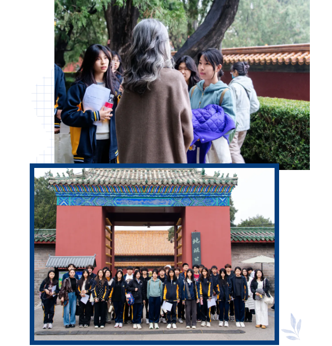 十一月初,同学们终于走进了地坛。那些在课本上读过无数遍的景象——剥蚀的琉璃、淡褪的朱红、苍劲的古柏,此刻真实地呈现在眼前。