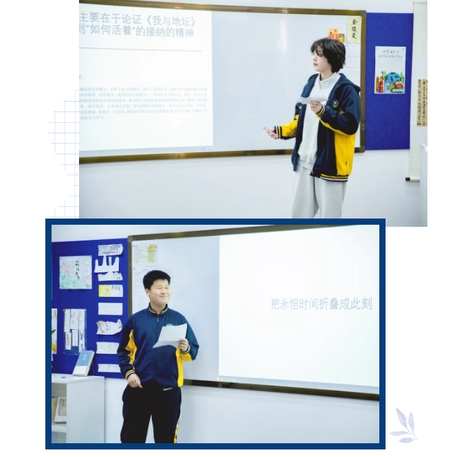 听着同学们的分享,俊岚老师说:“看着学生们从最初的文本阅读,到后来的深度思考,再到此刻的精彩呈现,我知道,这两个月的研学已经在他们心中播下了思考的种子。”