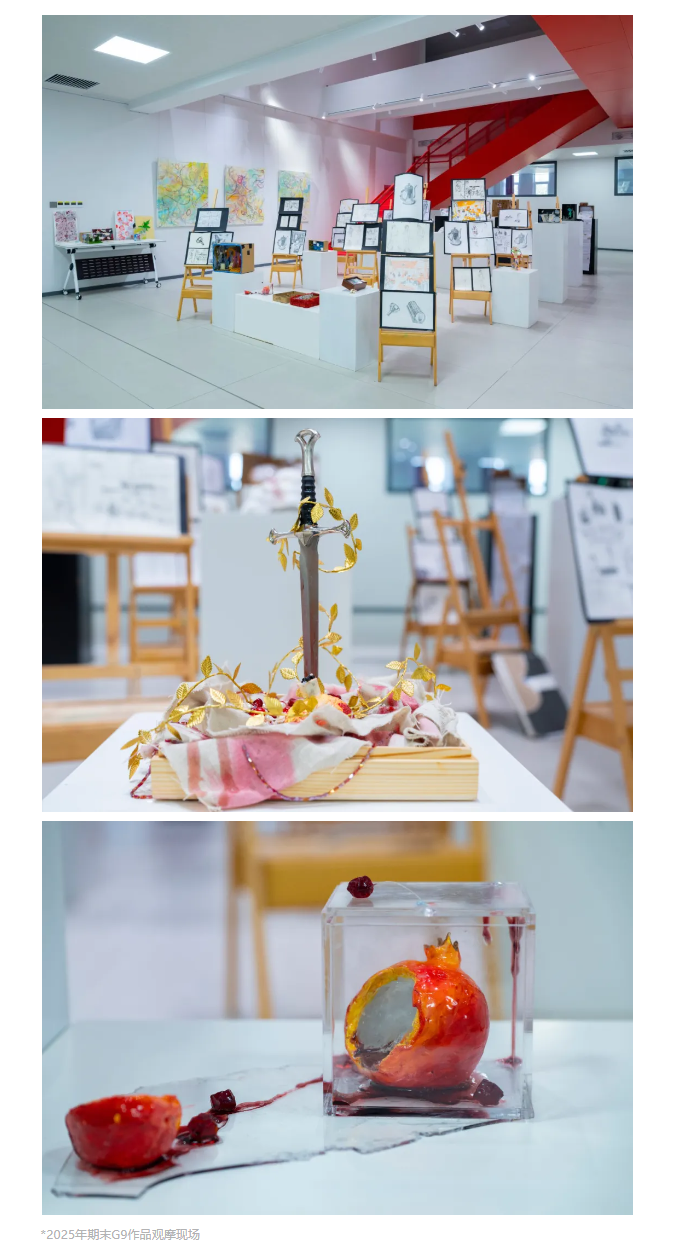 本场开放日恰逢G9和G10两个年级在读生的校内作品观摩活动结束,大家可以来到学校看到学生如何从兴趣创作过渡到更系统的学习方式,如何在平面、插画、材料实验、影像等多种媒介中找到自己的优势,也能直观感受学生思维方式、观察方式和表达方式的转变。对于正在探索艺术方向的学生而言,这是了解是否适合艺术路线的最 佳窗口。