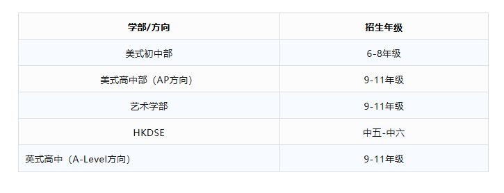 学校开设 AP、A - Level、DSE 及艺术四大课程方向,提供近 30 门 AP 课程,包括深圳地区少数学校提供的 AP 顶石课程,还引入 GOA 全球在线学院超过 50 门线上课程,满足个性化需求与全面人才培养。