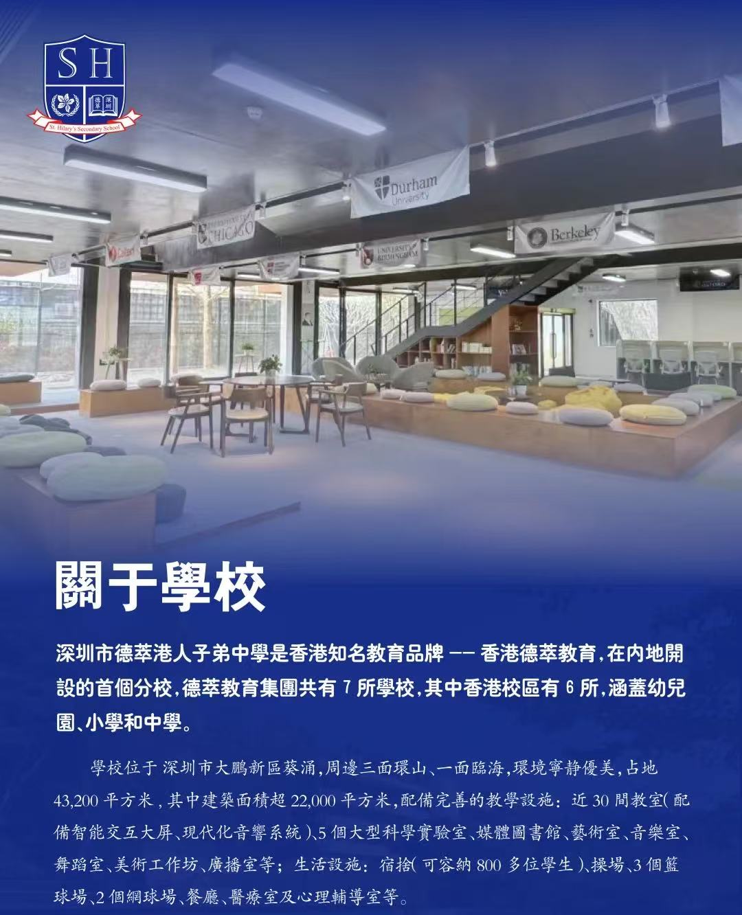 深圳市德萃港人子弟中学是香港教育品牌--香港德萃教育,在内地开设的分校,德萃教育集团共有7所学校,集团在香港已有6所学校(覆盖幼小中)