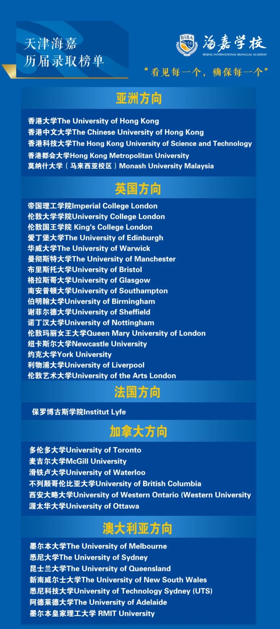 2025年海嘉学校捷报频传,录取的喜讯从四面八方迎面扑来,硕果累累的学校录取在海嘉下了一场激动人心的offer雨。各大全球学府,纷纷向海嘉学子伸出了橄榄枝。截至2025年11月,天津海嘉又新增一封来自伦敦国王学院(KCL)生物医学科学专业的offer。