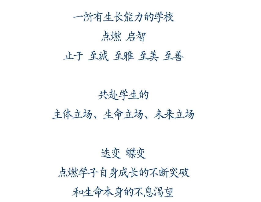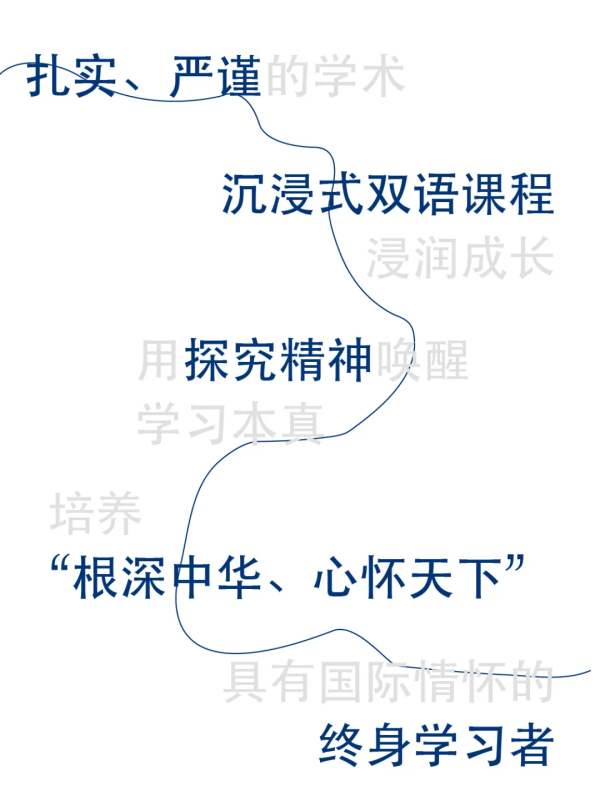 我们的愿景是做双语教育的典 范,根深中华,心怀天下。培养每一个孩子,在变幻的世界中,成为推动多元文化间互相理解、尊重及共融的双语使者。