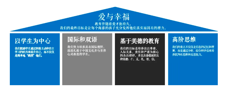 通过融合中西教育理念,海嘉鼓励学生成为严谨、均衡、自立的终身学习者,发展关爱他人、积极的人际关系,尊重和感恩他们所生活的世界,理解他们在全球共同体中所担当的角色和肩负的责任。