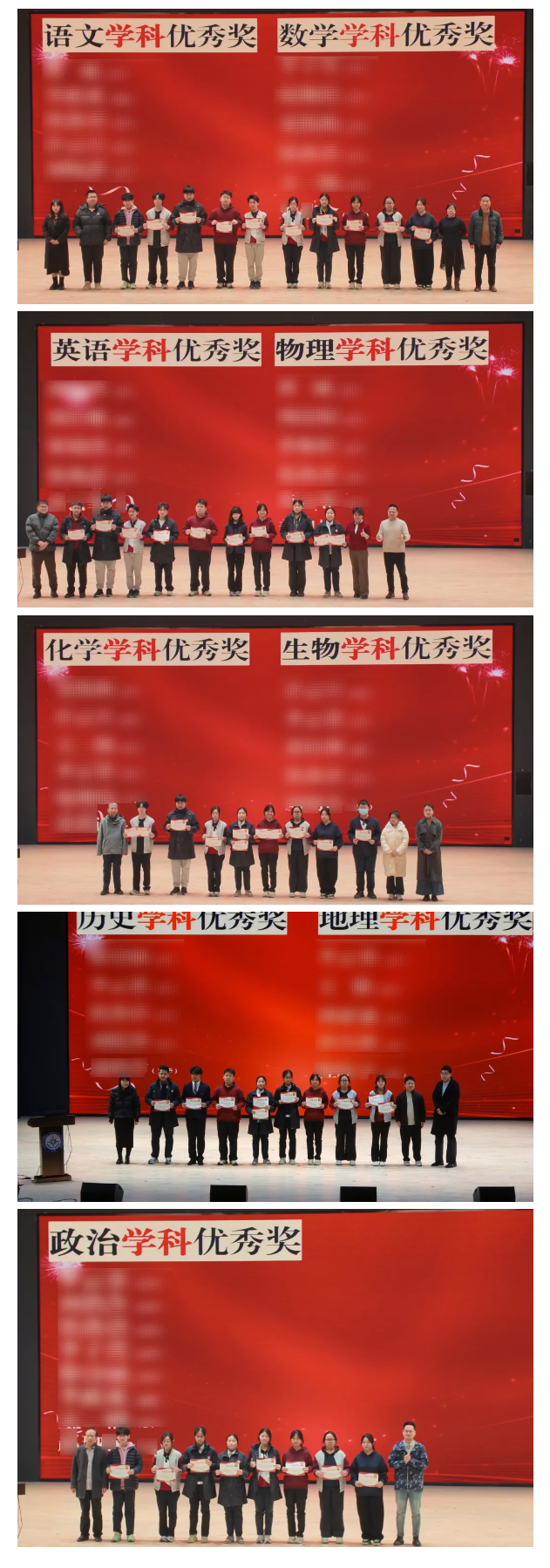 “博学之星”的揭晓将现场氛围推向热烈,这一奖项涵盖多学科领域的深耕者与综合素养的佼佼者。在语文、数学、英语、物理、化学、生物、历史、地理、政治等单科学习中,获奖学子以扎实的知识基础、刻苦的钻研态度,展现出对学科的热爱与执着。