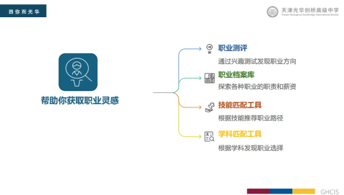 - 升学指导:牵头生涯规划,提供专业选择、升学申请及就业趋势解读指导;