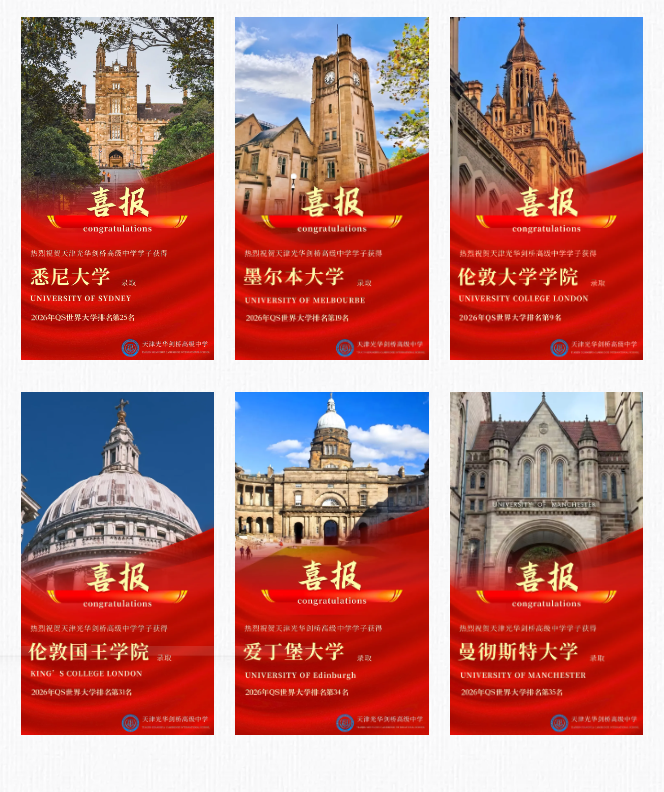 天津光剑始终秉持“以终为始”的育人理念,以高含金量录取为核心,构建多元升学路径,适配理工科、商科、人文社科、综合学科等不同成长方向,为各类特质学生提供精准升学支撑。
