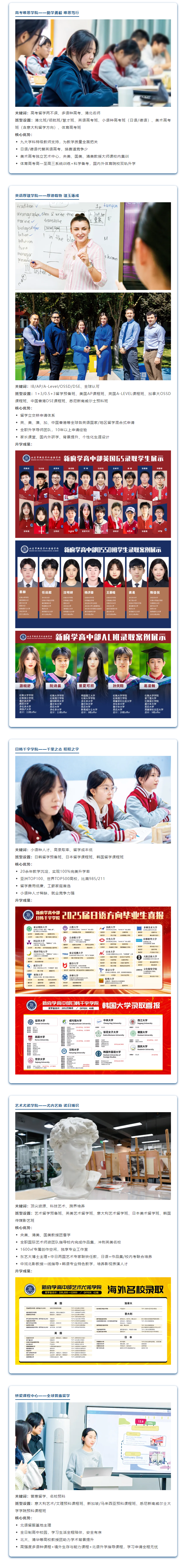 艺术尤诺学院:日本艺术留学班,意大利艺术 + 英美艺术留学班,韩国传媒影艺班,艺术留学预备班。