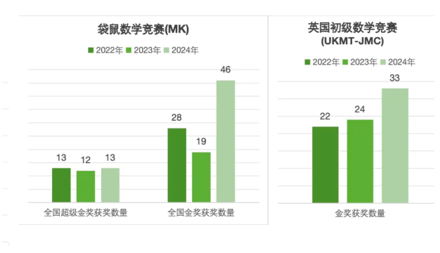 此外,学校鼓励3-6年级学生参加各类国际竞赛,主要包括澳大利亚数学竞赛(AMC)、英国初级数学竞赛(UKMT-JMC)、袋鼠数学竞赛(MK)等,以赛代练来培养学生们的数学思维。