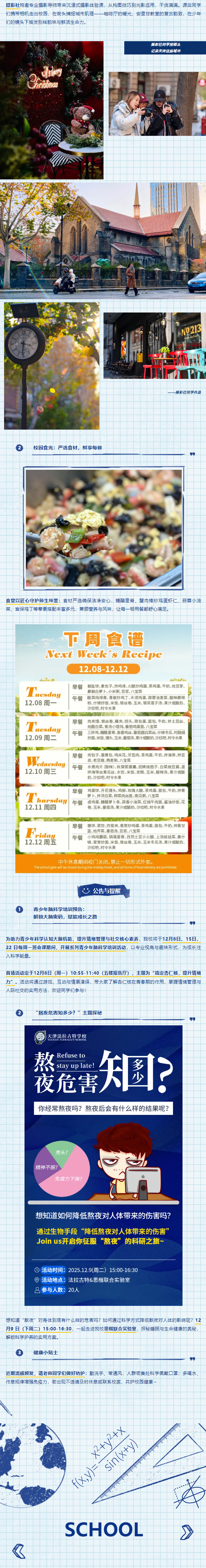 本周的校园时光,凝聚着学术探索的深耕、社团活动的活力,闪耀着个人荣誉的光彩与集体生活的温暖。这份奋进向上的热忱与笃行不辍的力量,将持续照亮成长之路。愿每一位法拉古特人在求知中积淀,在陪伴中同行,让校园始终孕育着无限希望与蓬勃生机!