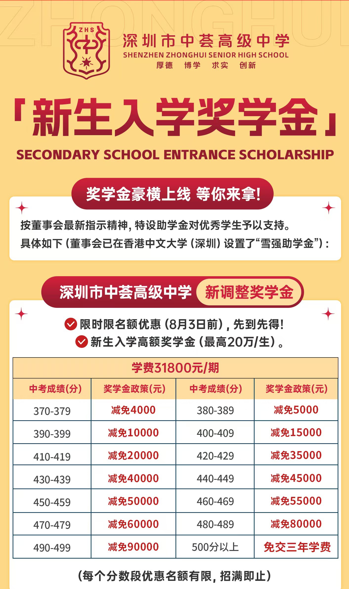 深圳市中荟高级中学新生入学奖学金